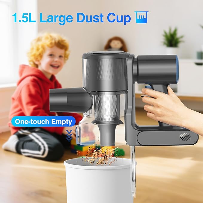 Zefiro Cordless Vacuum Cleaner for Home,450W /40Kpa 50Mins Stick Vacuum(No self-Standing), Anti-Tangle 1.5L Dust Cup, Rechargeable Wireless Handheld Vacuum for Pet Hair/Carpet/Floor,C10 -