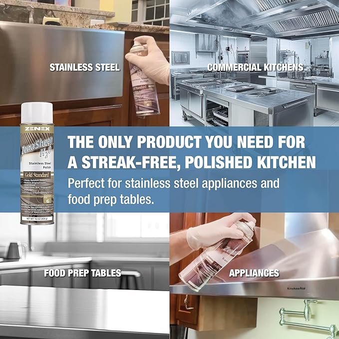 Zenex ZenaSheen H20 Stainless Steel Polish - Professional-grade Water-based Metal Cleaner, Polish & Protectant | Remove Grime & Restore Shine | Stainless Steel, Chrome, Brass & More | 16 oz (12 Pack) -