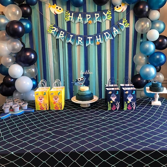 Rosoz Nature Fish Net Wall Decoration with Shells, Ocean Themed Wall Hangings Fishing Net Party Decor for Pirate Party,Wedding,Photographing Decoration (Aqua) -