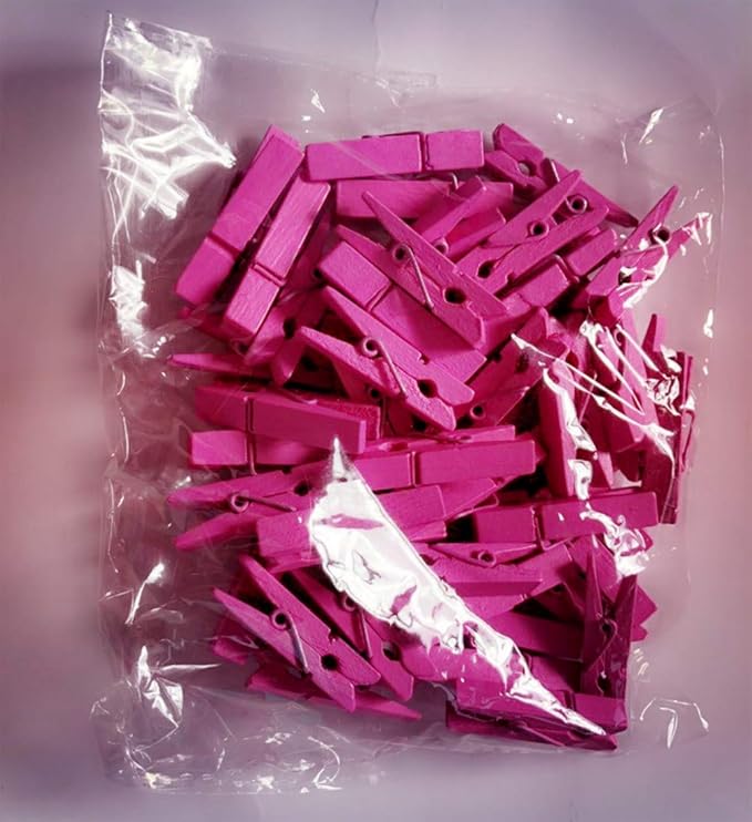 DurReus Tiny Clothes Pins Colorful Hang Up Photographs Drawings Party Clips Decor Baby Shower Game with Twine Pack 50 Pink -