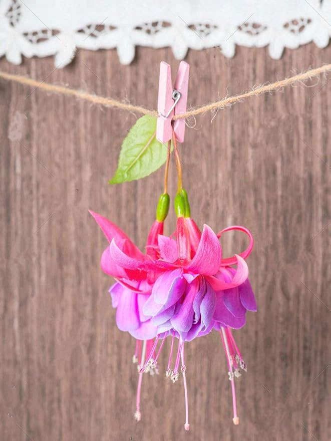 DurReus 50 Piece Small Wood Clips Mini Clothespins with Spring Jute Twine Durable Wall Peg Pin for Craft,Art Project,DIY,Party Decorative Purple -