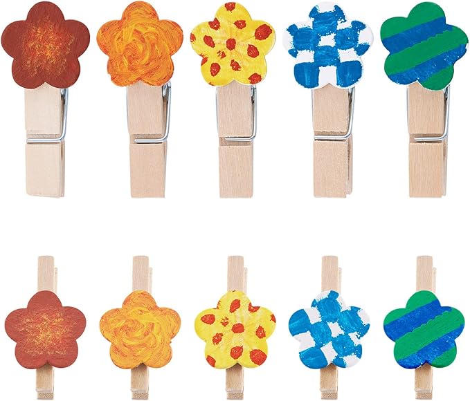 Pandahall 100pcs White Flower Clothespins Wooden Photo Paper Peg Graft Clips Pins with 10.93 Yards Natural Jute Twine for Paper Photo Display Hanging Home Party Decoration -