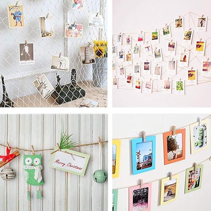 Small Clothes Pins for Photos,100PCS Mini Wooden Clothes Pins with 328 Feet Jute Twine,1.4 inch Tiny Clothes Pins for Photos,Crafts,Hanging Pictures,Baby Shower,Clip Photo Holders -