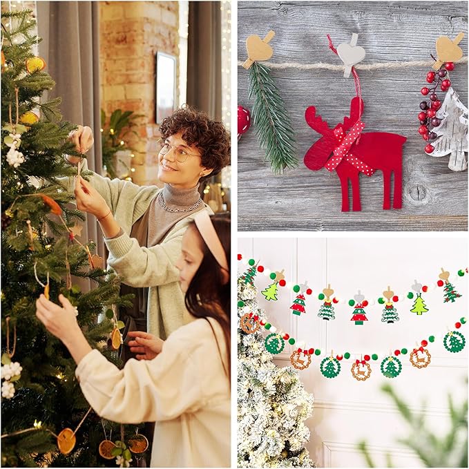 DurReus 50 Pieces DIY Mini Color Wooden Clothespins Home Decoration Hanging Craft Clips Photo Holder Paper Peg Jute Twine Clothing Line Orange -