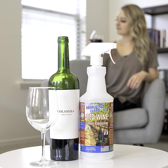 Amazing Red Wine Stain Remover – Natural Enzymes Eliminate Wine Stains Fast - Cleans Carpet, Upholstery, Clothing, Table Cloth & More - USA Made (32oz) -
