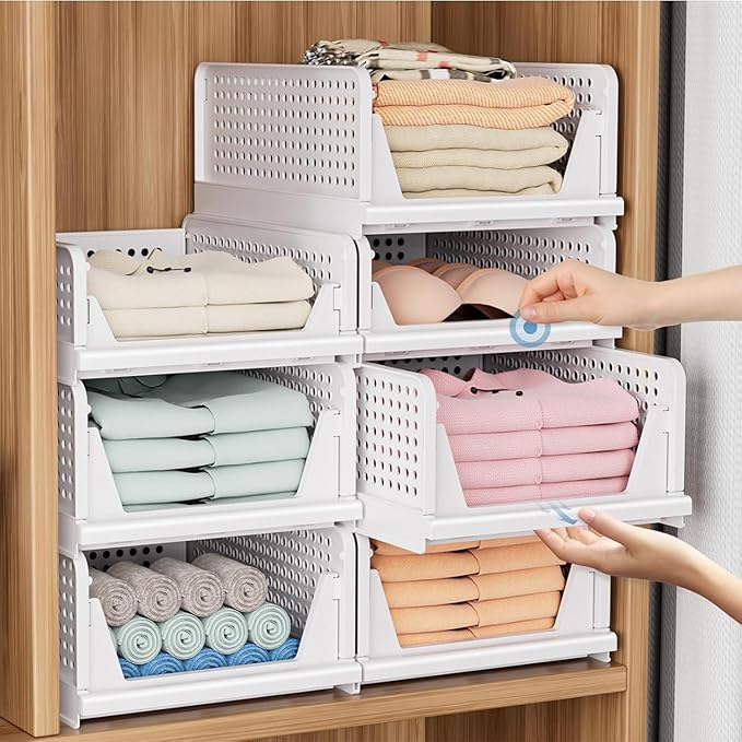 5 Pack Folding Closet Organizers Storage Box, Stackable Storage Bins, Plastic Drawer Basket Closet Storage for Wardrobe Cupboard Kitchen Bathroom Office 5L (White) -