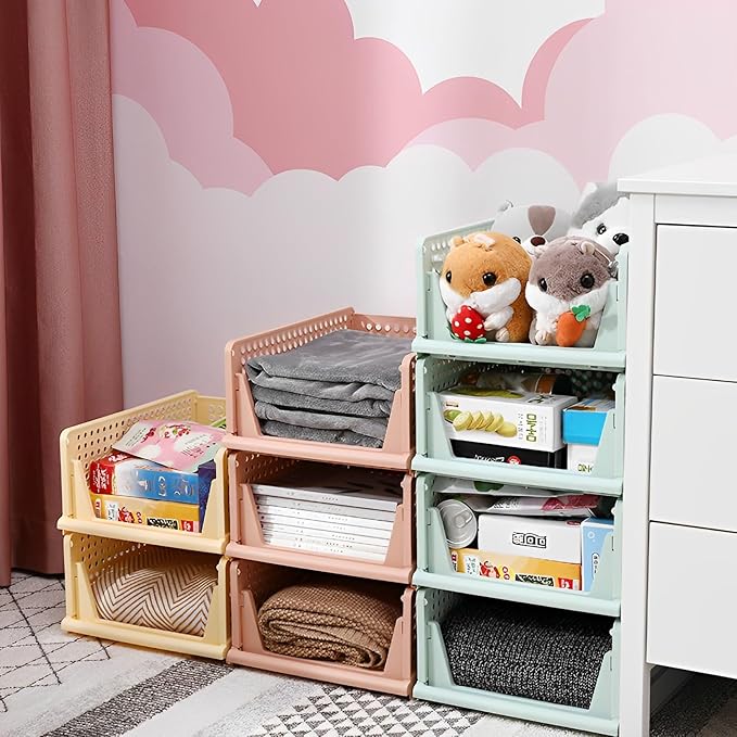 5 Pack Folding Closet Organizers Storage Box, Stackable Storage Bins, Plastic Drawer Basket Closet Storage for Wardrobe Cupboard Kitchen Bathroom Office 5L (Pink) -