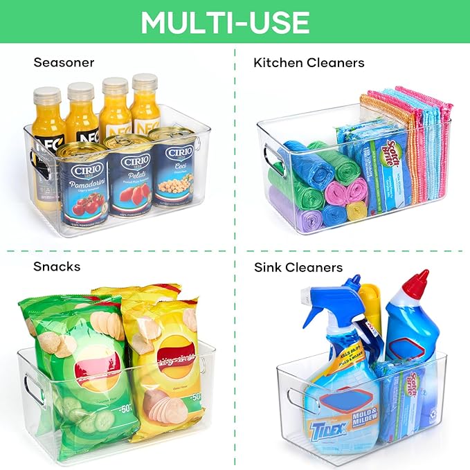12 Pack Large Clear Plastic Storage Bins,Plastic Containers with Handle for Pantry Organizer and Storage,Perfect for Kitchen,Fridge,Cabinet, Closet,Bathroom Under Sink Storage -