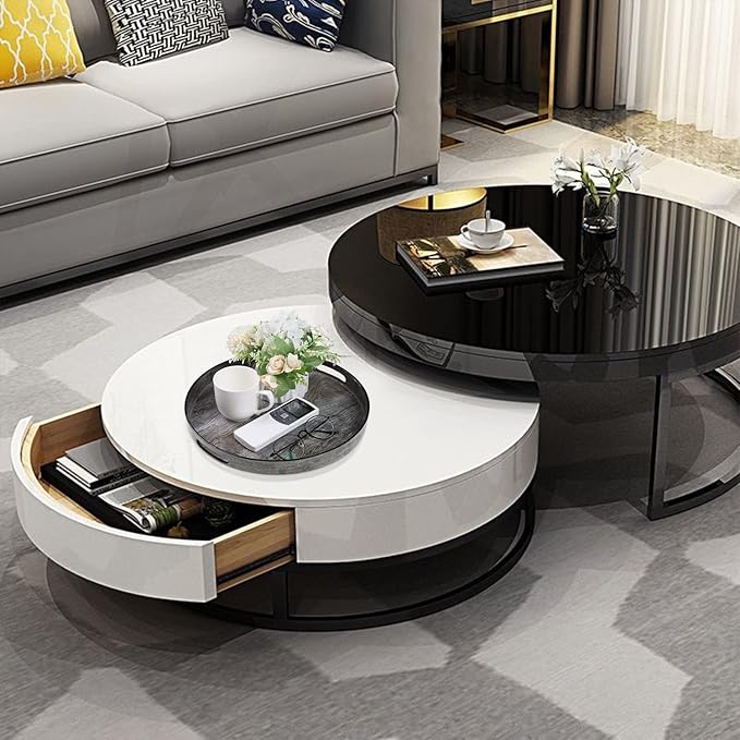 MAONAME Black Decorative Tray for Coffee Table, Modern Round Serving Tray with Handles, 13" Plastic Tea Trays for Ottoman, Bathroom Decor -