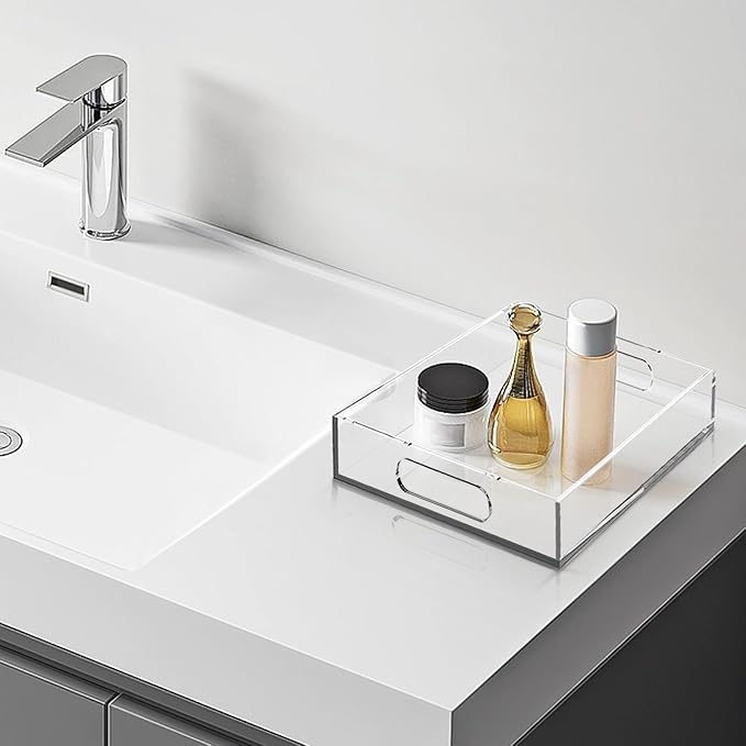 Acrylic Serving Tray with Handles - Lucite Organizer for Bench, Coffee Table, Countertop, Kitchen, Bathroom, Living Room, Powder Room