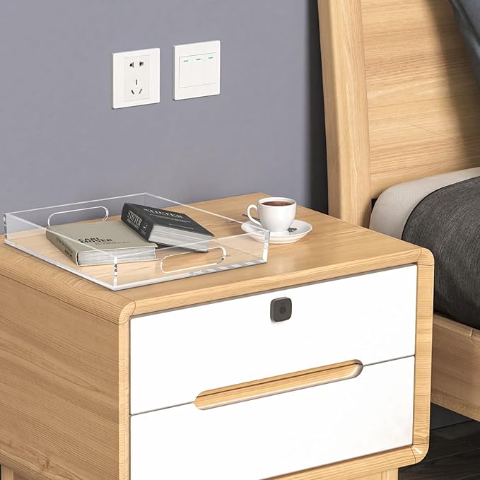 Acrylic Organizers Tray - 11.2"x7.9" with Handle for Ottoman, Coffee Table, Kitchen, Bathroom & Living Room -