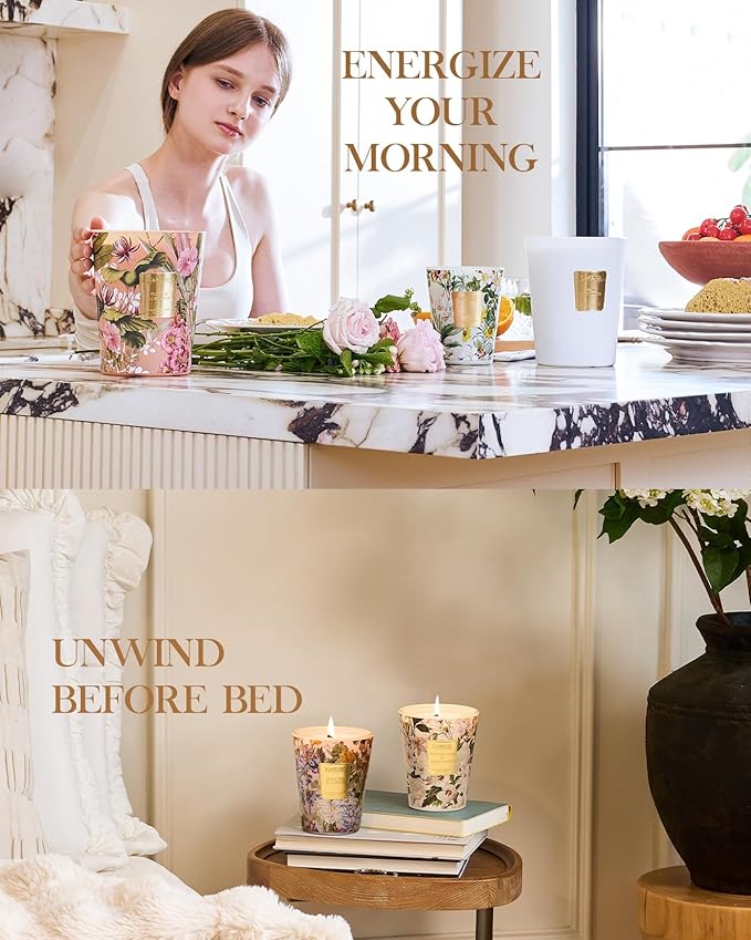 M&SENSE Violet YlangYlang Scented Candle, Soy Natural Wax Candles, 14.1oz 60H Burn Time Slow Burning, Aromatherapy Sleep Calm Home Fragrance for Women Men -
