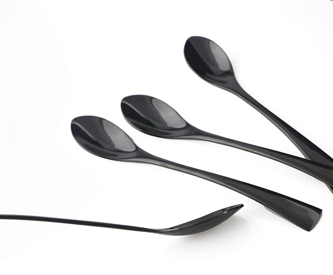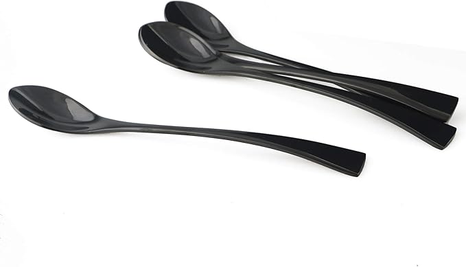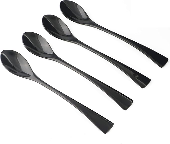 4-Pieces 18/10 Stainless Steel Long Handle Mixing Spoon, Stirring for Ice Tea Coffee, Mirror Polishing Black