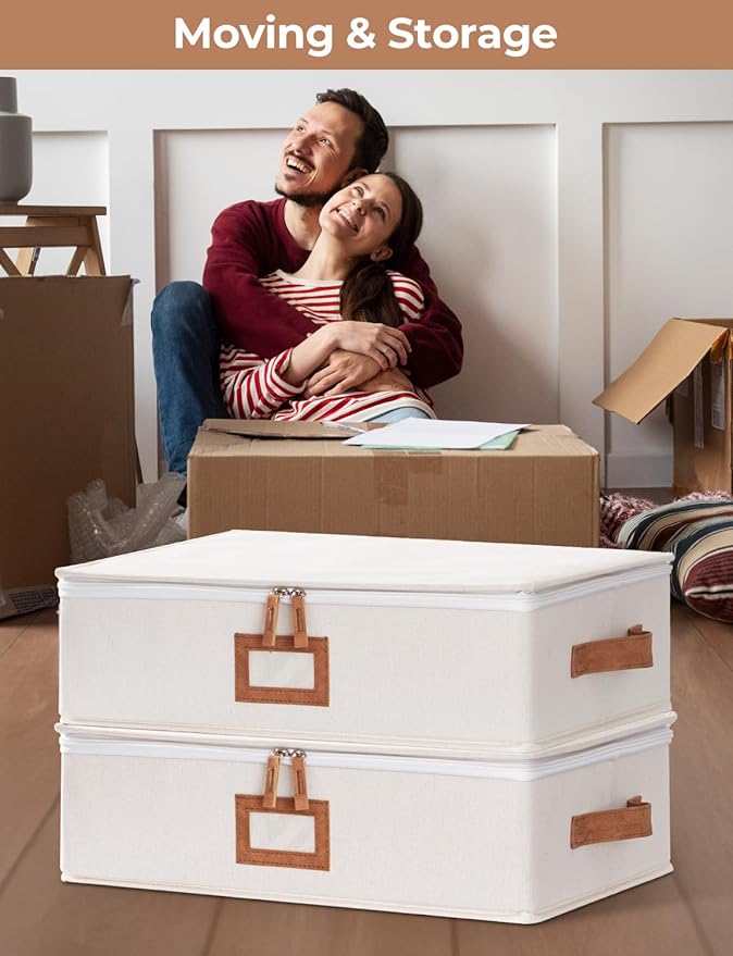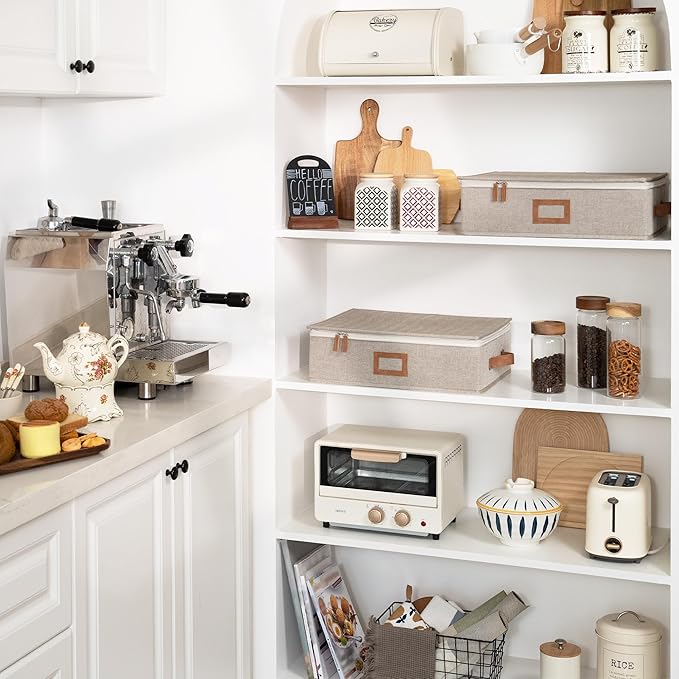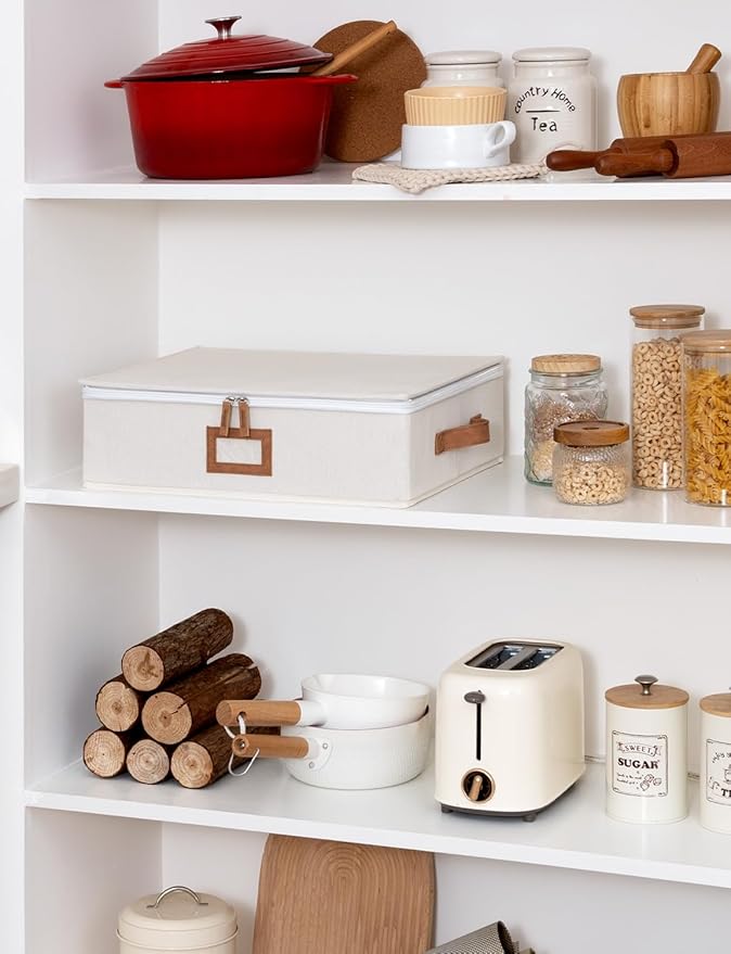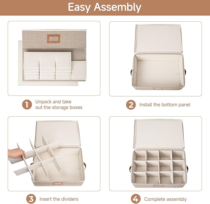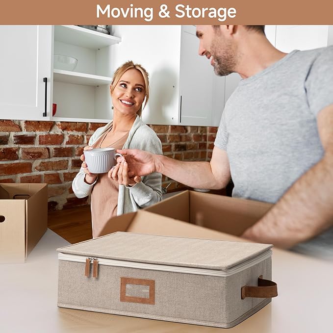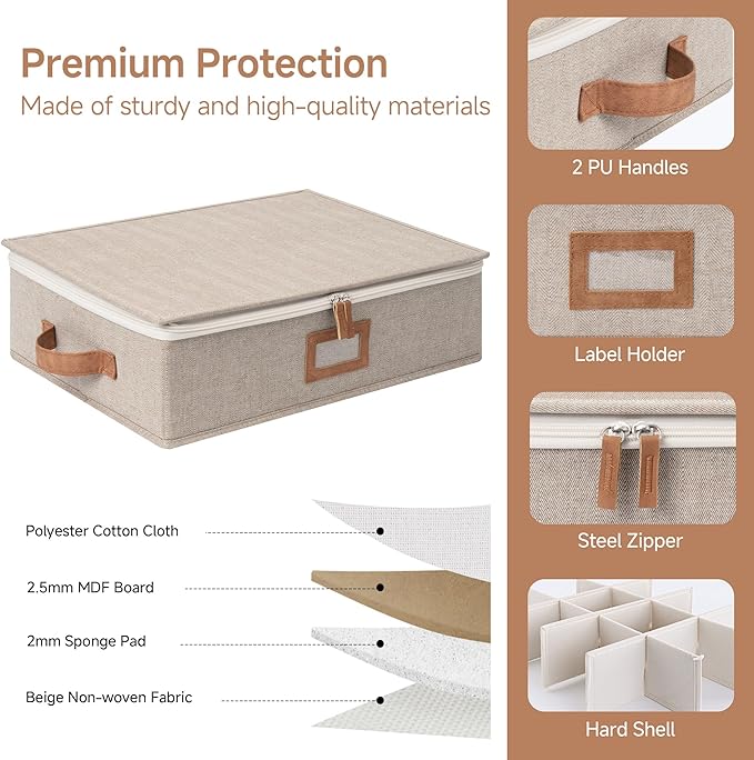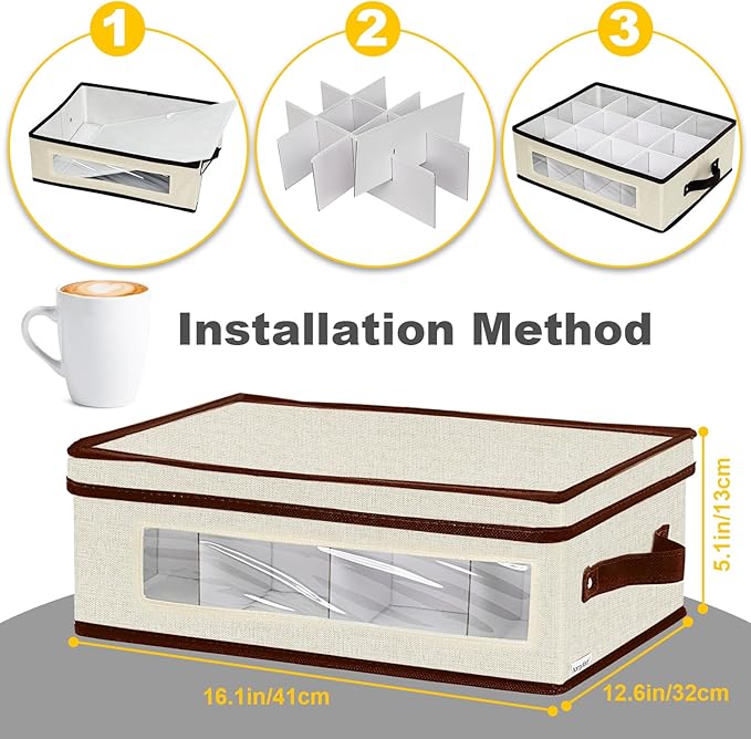 homyfort 2 Pack Mug Storage Box with Dividers, China Cup Storage Containers Organizer Hard Shell with Compartments for 24 Tea Cups and Coffee Mugs (Beige) -
