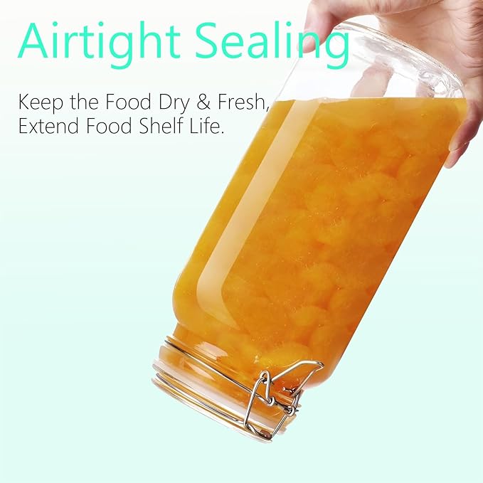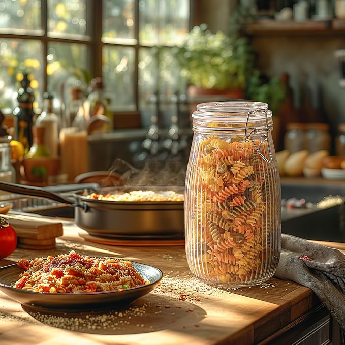 ComSaf Airtight Glass jar with lid 51oz Set of 3, Glass Storage Containers with Lids, Large Glass Canister, Striped Clip Fastening Jar for for Canning, Flour, Pasta,Coffee Beans, Cereal, Rice, Pickle -