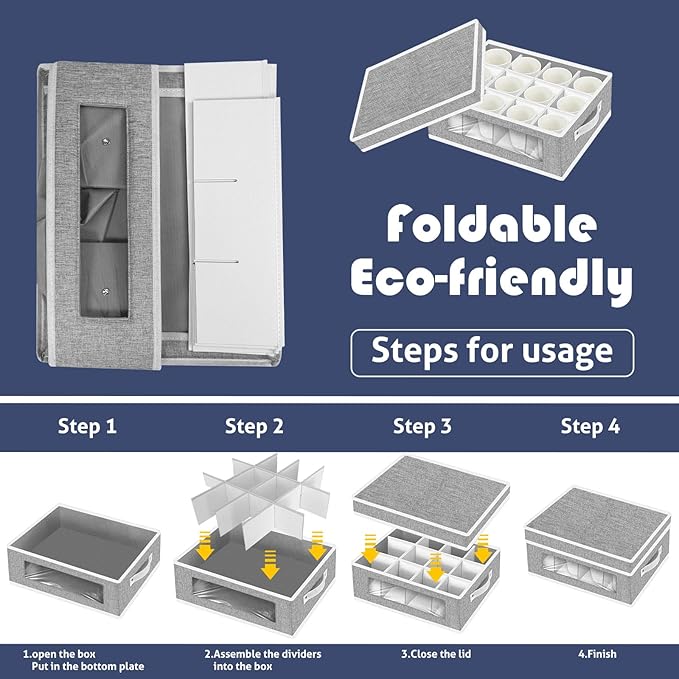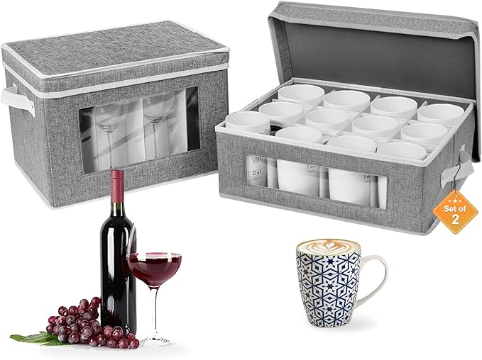 homyfort 2 Pack Cup and Coffee Mug Storage Box Organizer with Dividers, China Storage Containers Hard Shell with 24 Compartments for Mugs Moving and Protection (Grey) -