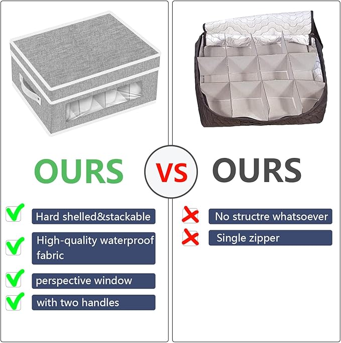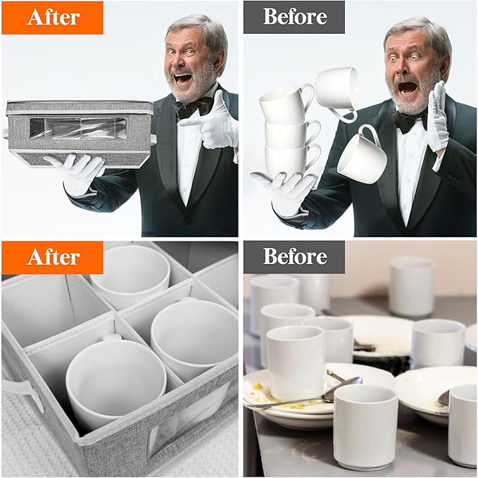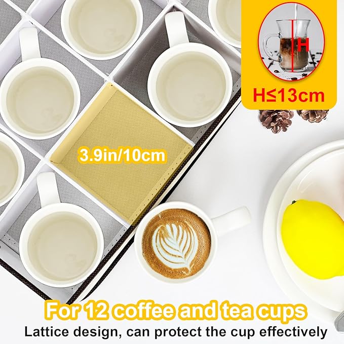 homyfort Mug Storage Box, China Storage Containers Organizer Hard Shell with Dividers for 12 Coffee Mugs, Tea Cup, Moving & Packing (Grey) -