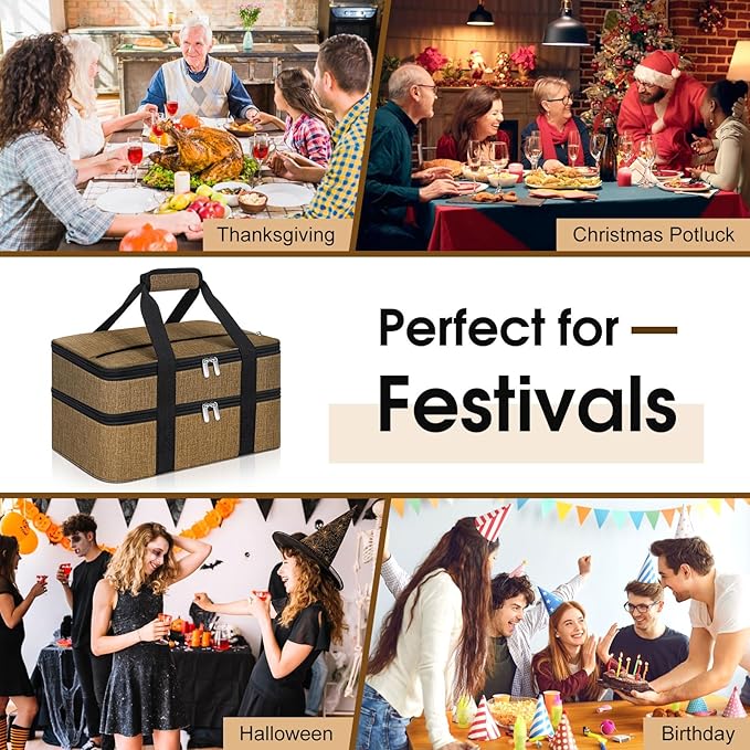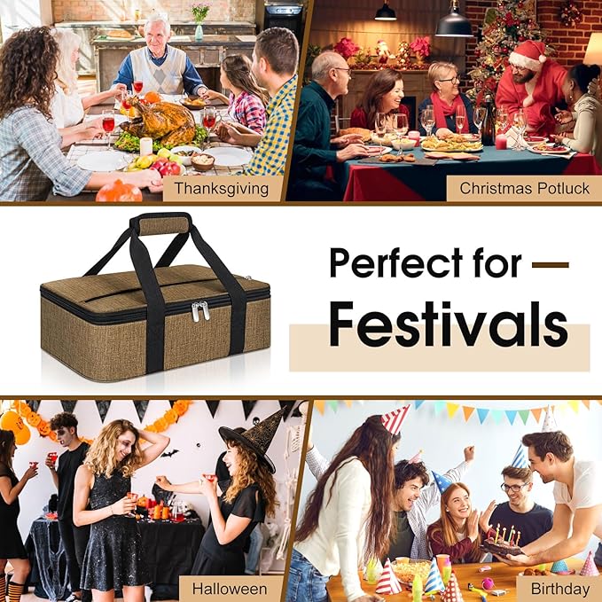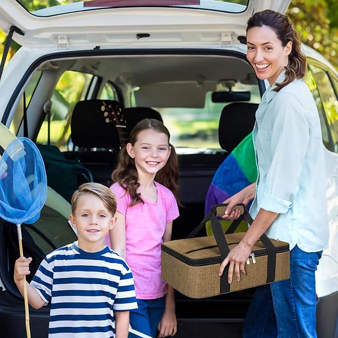 Double Insulated Casserole Carrier, Portable Casserole Carrier for Hot or Cold Food Lunch Tote Warmer or Cooler Bag, Lasagna Lunch Bag for Potluck Parties- Fits 9" x 13" Baking Dish-Coffee -