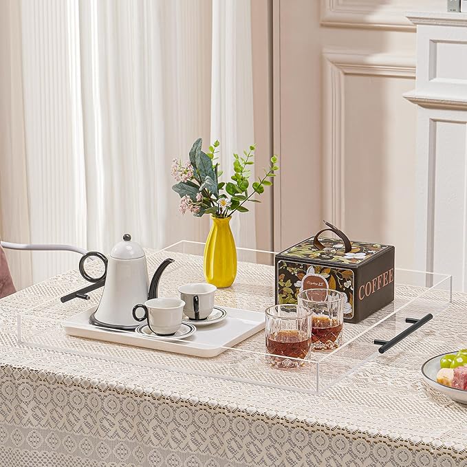 Boho Sturdy Acrylic Rectangular Serving Tray with Handles, Coffee Table, Food & Breakfast-Kitchen Countertop & Living Room Ottoman Tray, 15.7" x 11.8" -