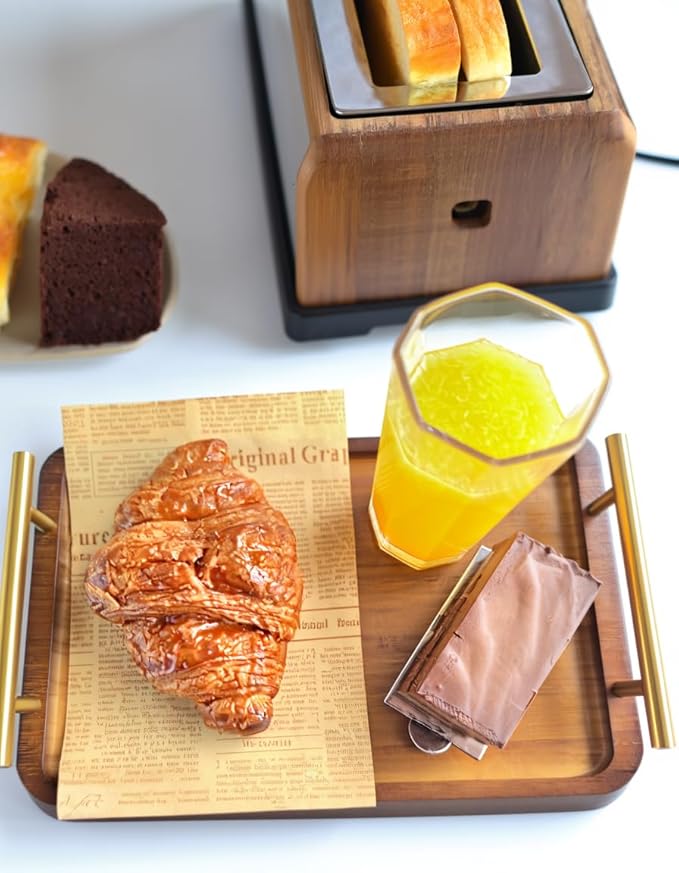 Bamboo Serving Tray with Gold Handles - Small Wood Serving Tray for Breakfast in Bed, Coffee Table, Dinner & bar - Decorative Bed Table Tray for Kitchen or Bedroom(11.8" x 7.5" x 2") -