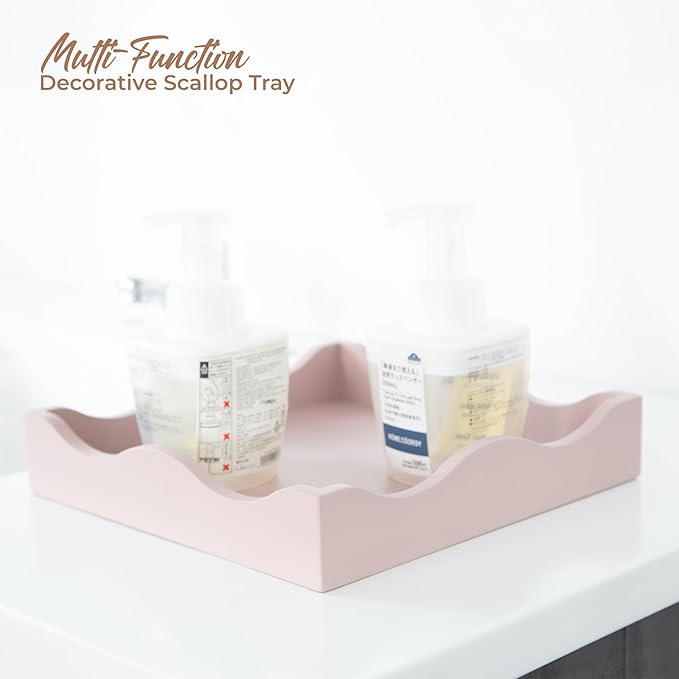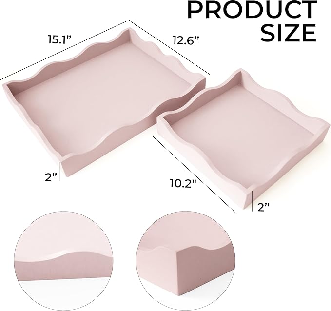 Wooden Scallop Serving Tray - for Coffee Table, Breakfast, Dinner Kitchen Living Room Bedroom, and Home Decor for All Occasions (Pastel Musk Mist, Combo S+M) -