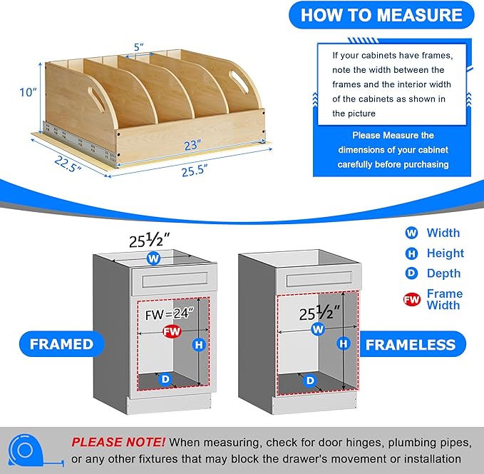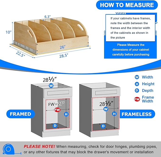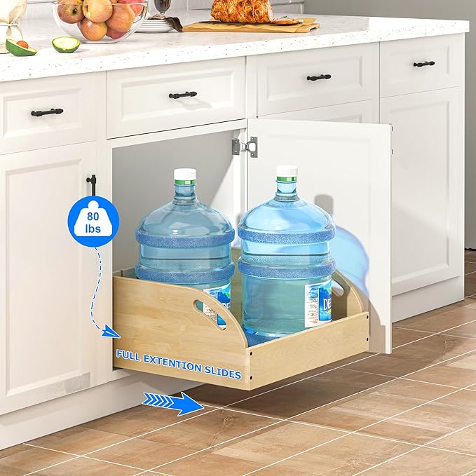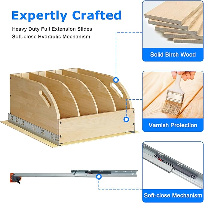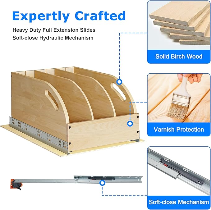 WelFurGeer Birchwood Pot and Pan Organizer with Soft-Close Drawer, Pull Out Cabinet Organizer, Heavy-Duty Slide-Out Storage for Baking Sheets, Cutting Boards, and Kitchen Utensils -