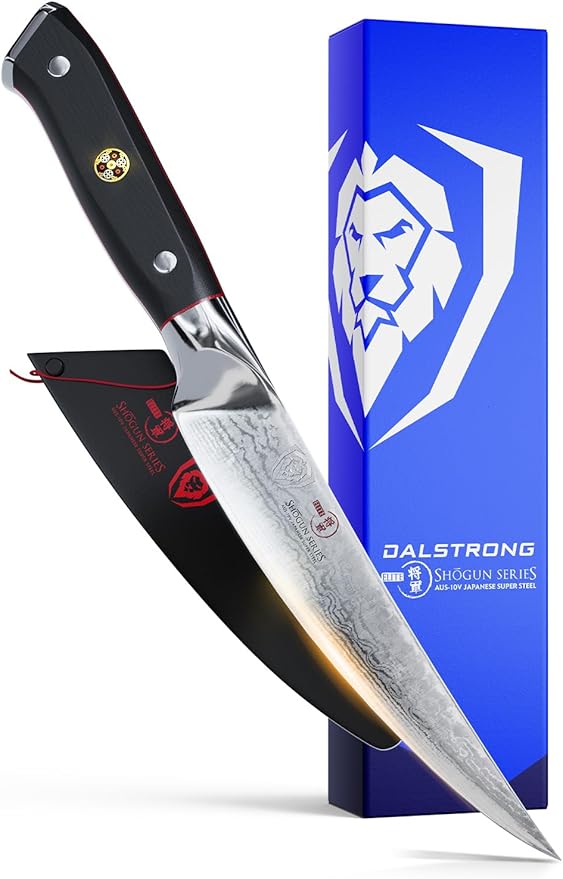 DALSTRONG Boning Knife - 8 inch - Shogun Series ELITE - Damascus AUS-10V Japanese Super Steel - Fillet Knife Gift - Meat Cutting, Carving, Bone, Trimming, Deboning - Black G10 Handle - Sheath Included -