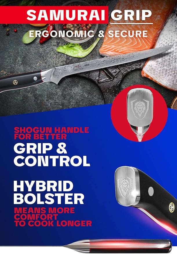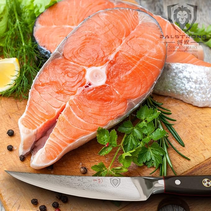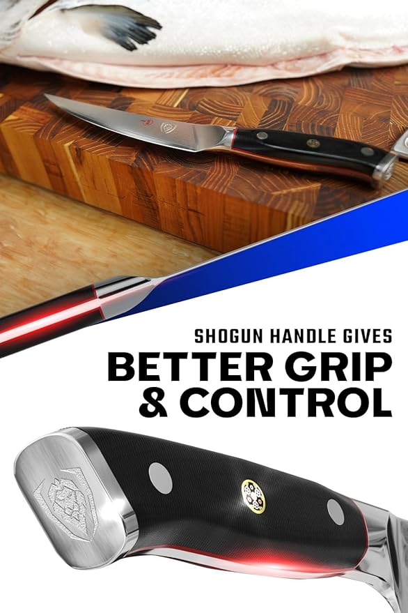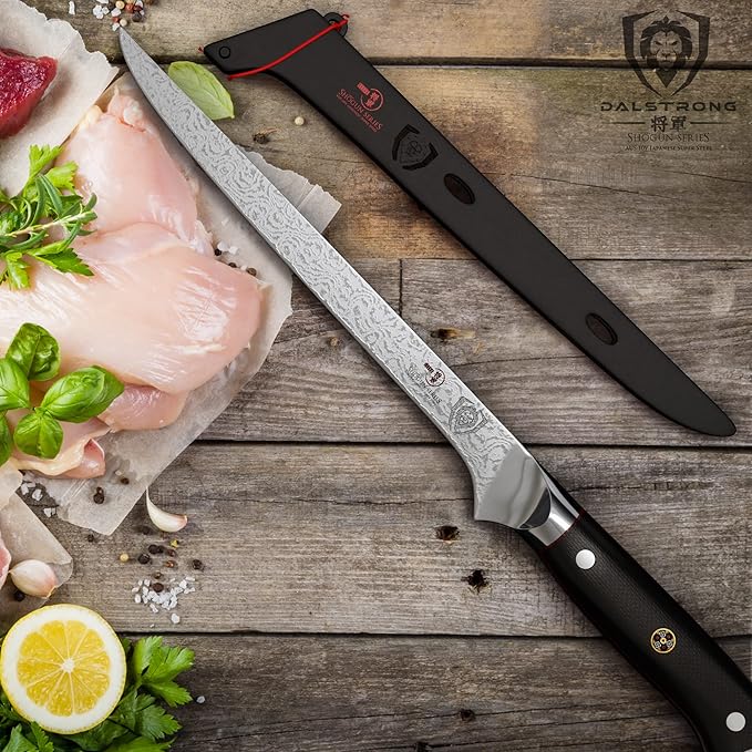 Dalstrong Fillet Knife - 6 inch - Shogun Series ELITE - Damascus - AUS-10V Japanese Super Steel - Boning Knife - Meat Cutting, Carving, Bone, Trimming, Deboning - Black G10 Handle - Sheath Included -