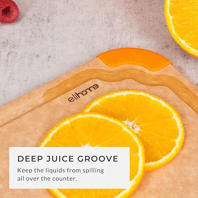Elihome Cutting Wise 4pcs Kitchen Cutting Board Set, Non Slip Feet, Color Coded with Food Icon, Natural Wood Fiber, Dishwasher Safe, Eco-Friendly, Juice Grooves,Non Porous, BPA Free, Made in USA -