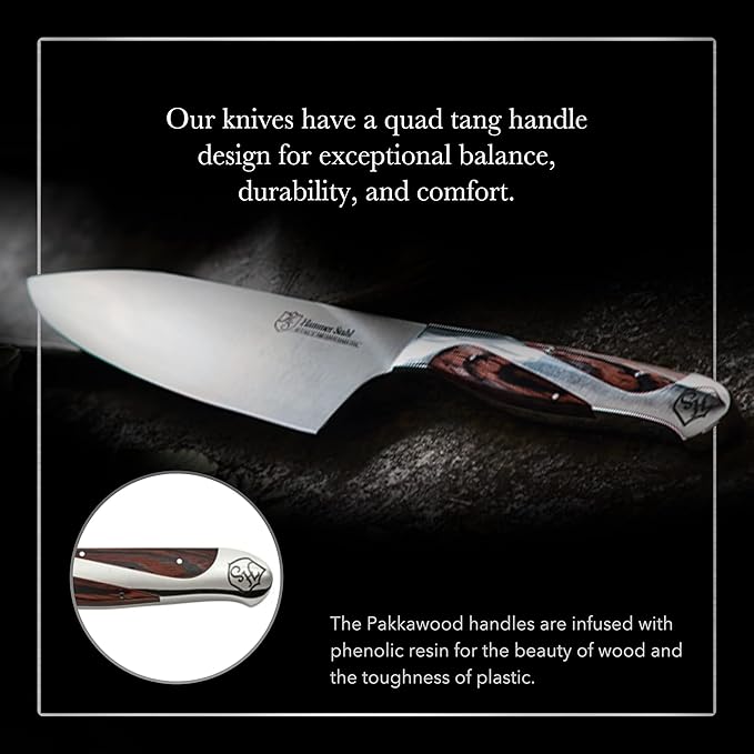 Hammer Stahl 8-Inch High Carbon Chef Knife | Versatile Cooking Knife for Chopping, Slicing & Precision Cutting | German Forged Sharp Kitchen Knife | Ergonomic Quad-Tang Pakkawood Handle & Gift Box -