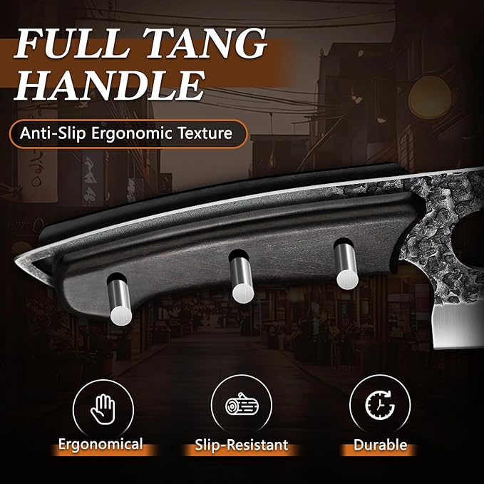 XYJ Authentic Since 1986, FULL TANG 8 Inch Boning Knife With Sheath, Stainless Steel Deboning Meat Cleaver for Meat Cutting, Vegetable Kitchen Knife for Outdoor Camping -
