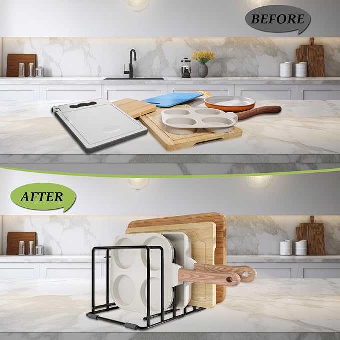 Baking Sheet Organizer Rack – 5-Slot Bakeware & Cookie Tray Holder for Kitchen Cabinet or Countertop, Compact Stainless Steel Cutting Board Rack with Rust-Resistant Frame & Anti-Slip Feet -