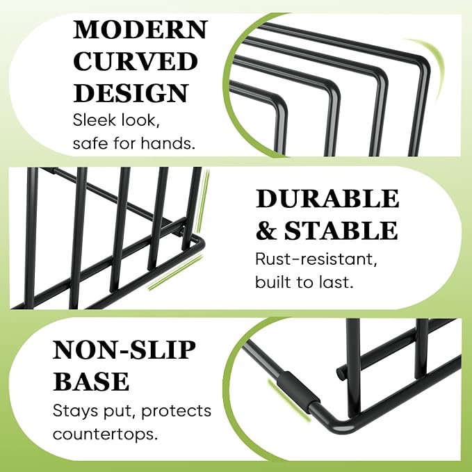 2-Pack Baking Sheet Organizer Rack – 5-Slot Bakeware & Cookie Tray Holder for Kitchen Cabinet or Countertop, Compact Stainless Steel Cutting Board Rack with Rust-Resistant Frame & Anti-Slip Feet -