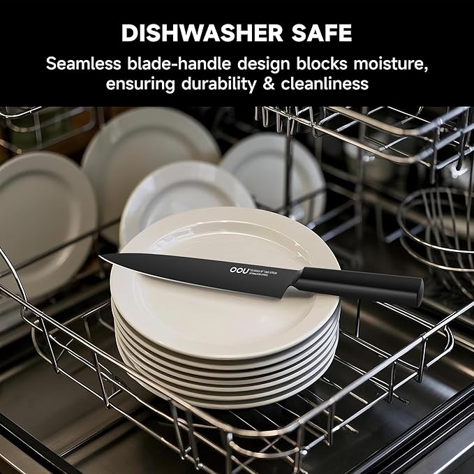 OOU Knife Set with Block and Sharpener,9 Pcs High Carbon German Steel Knife Block Set, Dishwasher Safe Knife Set with Upgrade Ventilated Block & Built-in Cutting Board Organizer, Anti-Rust -