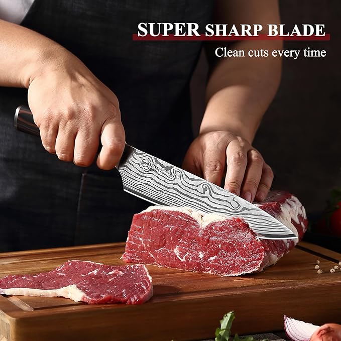 Sunnecko Chef Knife 8 inch,High Carbon Stainless Steel Kitchen Knife,Ultra Sharp Gyutou Cutting Knife with Sheath and Gift Box for Family & Restaurant -