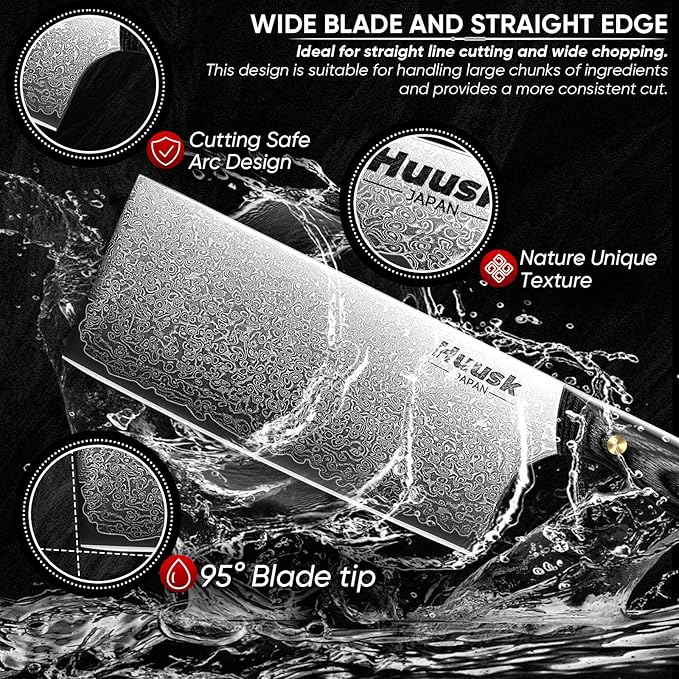 Huusk Damascus Cleaver Knife 7 inch, VG10 Butcher Knives for Meat Cutting, Kitchen Knives with Wood Handle for Chopper Vegetables, Hand Forged Chooping Knives, Birthday Dad Mom Gift -