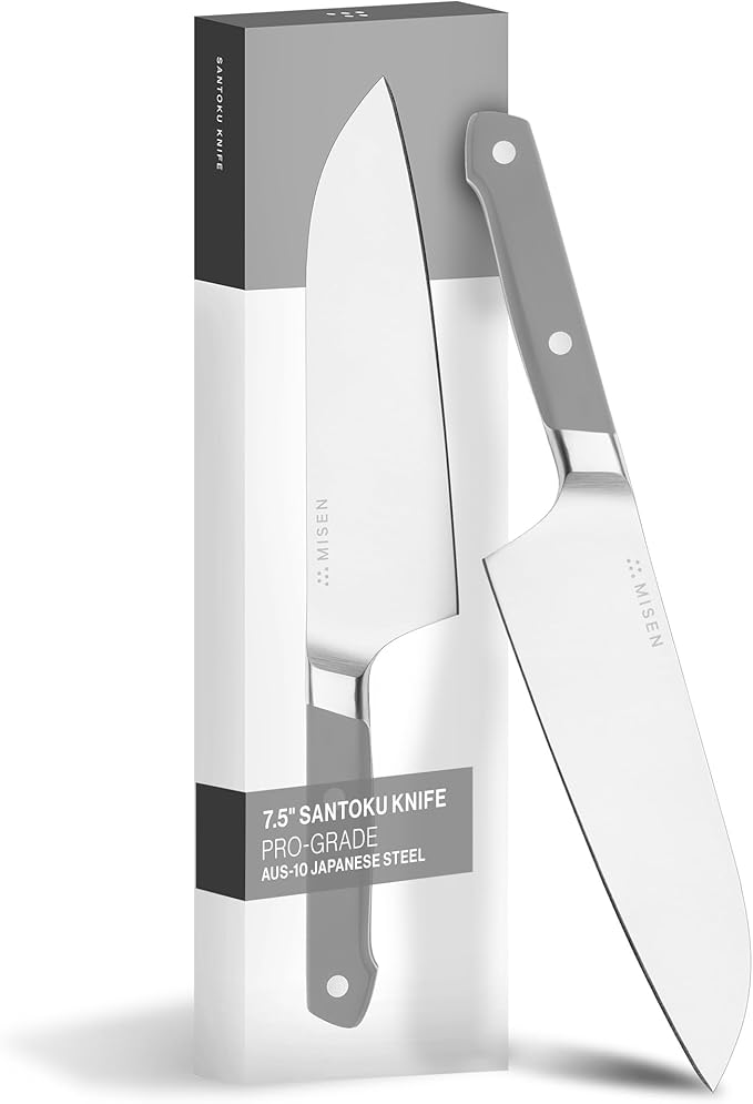 Misen Japanese Santoku Chef Knife - 7.5 Inch High Carbon Stainless Steel - Classic Japanese Knife Design for Cutting, Slicing, and Chopping - Razor Sharp Japanese Style Kitchen Knife, Gray -