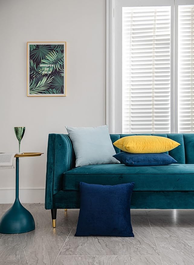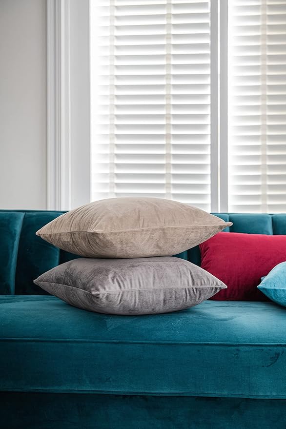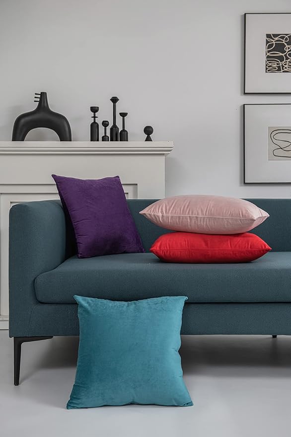 Throw Pillow Cases 20x20 Teal: 2 Pack Cozy Soft Velvet Square Decorative Pillow Covers for Farmhouse Home Decor -