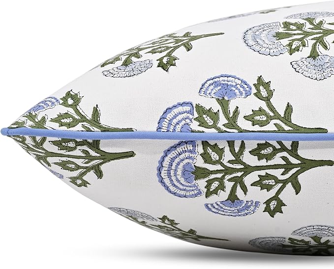 Ridhi Queen Blue Block Print Preppy Grandmillennial Pillow Cover Set of 2-20" x 20" Throw Pillow for Home White Floral Pillow Cover Grandmillennial Home Decor Thanksgiving -