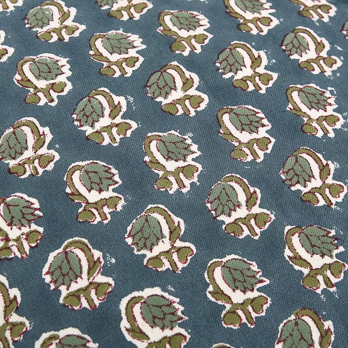 Ridhi Light Steel Blue Block Print Cotton Throw Pillow Covers for Decorative Couch Pillows for Living Room, Chic Boho Cute Outdoor Valentine Pillows Covers Gifts 16x16 Inches -