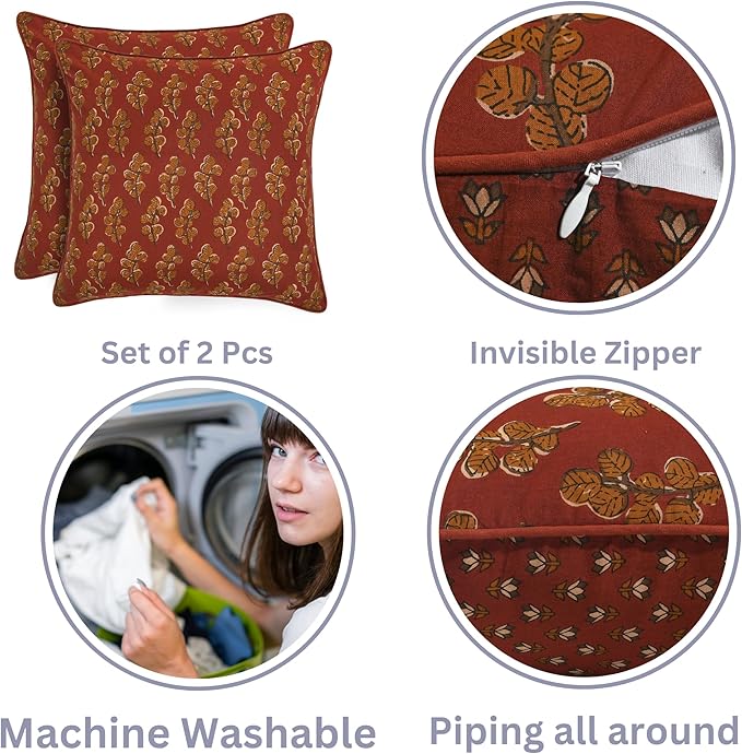 Ridhi Hand Block Print 18x18 Red Decorative Outdoor Couch Throw Canvas Pillow Cover Set of 2 Washable Modern Vintage Boho Chic Spring Home Decor GIFS Cover -