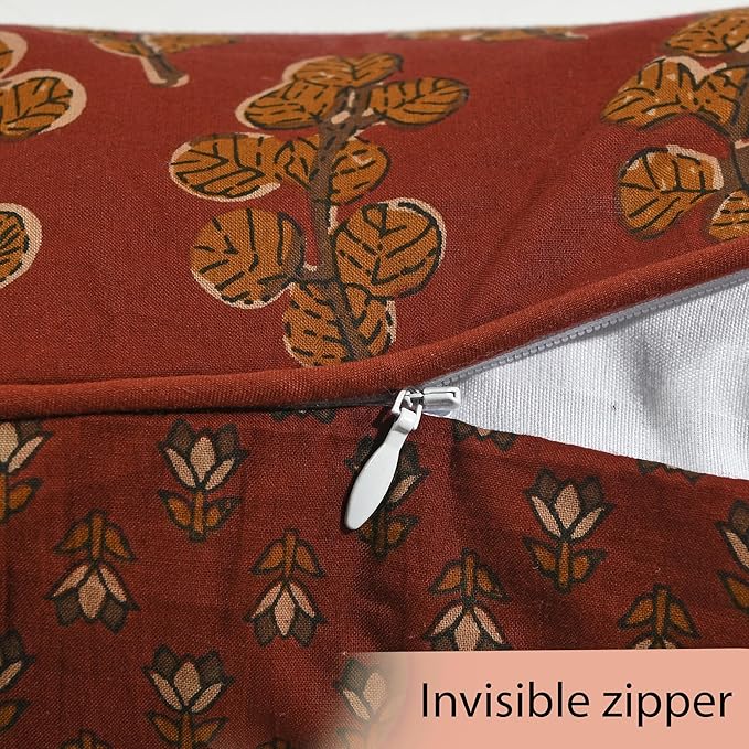 Ridhi Hand Block Print 20x20 Red Decorative Outdoor Couch Throw Canvas Pillow Cover Set of 2 Washable Modern Vintage Boho Chic Spring Home Decor GIFS Cover -
