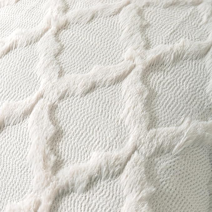 Set of 2 Soft Moroccan Throw Pillow Covers 12x20 Inch Plush Boho Decorative Pillow Cover Accent Cushion Case for Couch Sofa Bed, Cream White -