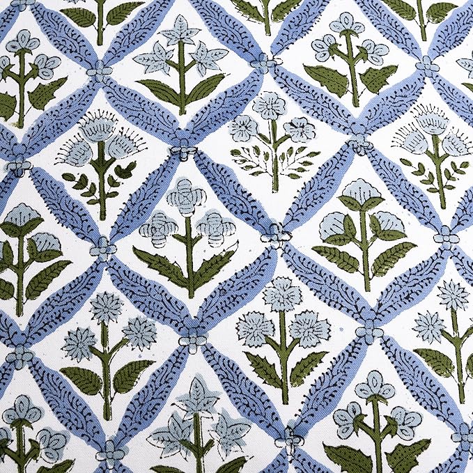 Ridhi Queen Blue Block Print Preppy Grandmillennial Pillow Cover Set of 2-18" x 18" Throw Pillow for Home White Floral Pillow Cover Grandmillennial Home Decor Thanksgiving -