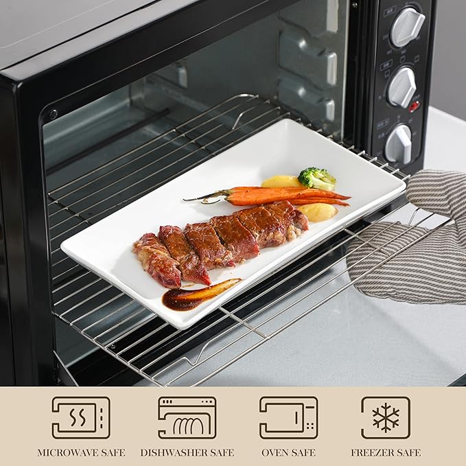 Rectangular Serving Platters Set, 12 Inch Large Ceramic Serving Plates, Stackable Serving Tray, Porcelain White Serving Platter for Appetizer, Sushi, Dessert, Snacks, Steak, Dishwasher Safe (4PCS) -