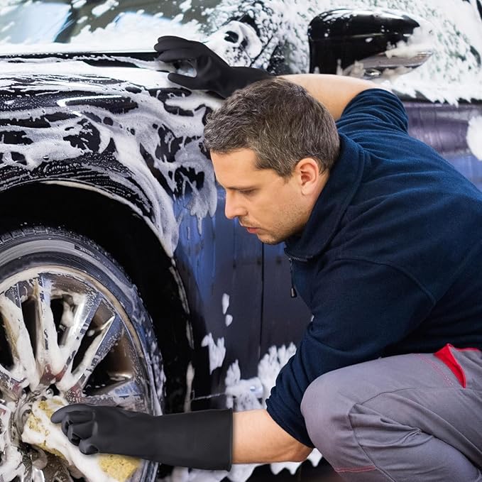 Bamllum 4 Pairs Black Rubber Dishwashing Gloves - Reusable Cleaning Gloves for Kitchen, Household, Anti-Slip, Flexible & Long-Lasting (Large) -