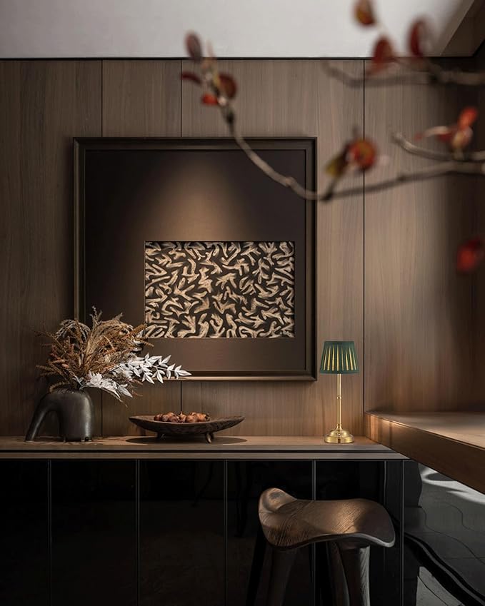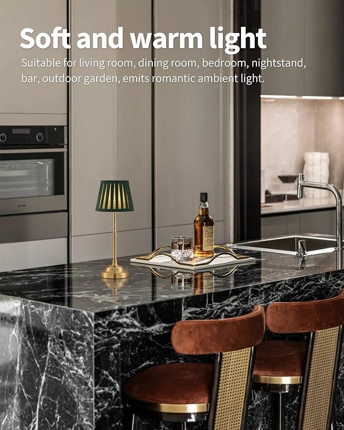 KDG Cordless LED Table Lamp Set of 2, Portables Fabric Shade Desk Lamps, 4000mAh Rechargeable Battery Powered Lighting, Dimmable Light for Dining Room, Bedroom, Bedside, Night Light, Balcony (Green) -