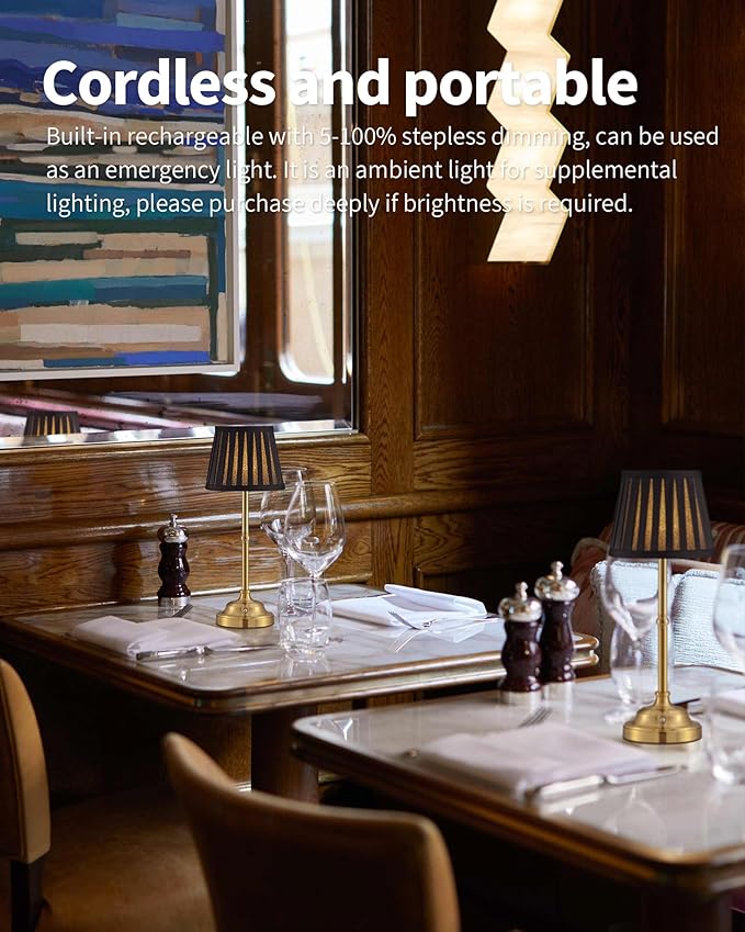 5w Led Cordless Mini Lamps,3000 mah Battery Operated Lamp,3 Color Temperature Dimmable Table Lamp,Gold Rechargeable Table Lamp Fabric,Aesthetic Small kitchen Lamp for Counter,Restaurant,Bar,H9.8" -