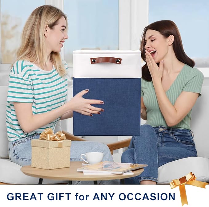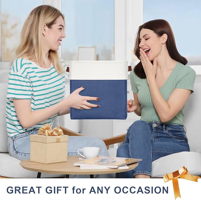 Large Fabric Storage Baskets | 50L Storage Bins, Decorative Linen Closet Baskets with Handles for Organizing, Shelf, Toys, Clothes, Home, Office, Nursery, 17x12x15Inches (Navyblue&White) -