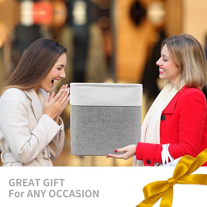 13x13 Cube Storage Bins, Collapsible Fabric Storage Box, 4 Pack Closet Baskets with Handles for Organizing, Shelf, Toys, Clothes, Home, Office, Nursery (Grey&White) -